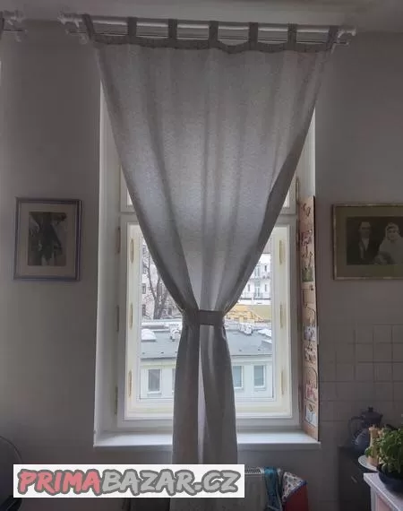 Rozměry (1 závěs): 130 x 258 cm + 2x stuha na svázání uprostřed. Materiál: 100% polyester. Cena uvedená za oba kusy. Možné zakoupit i samostatně.