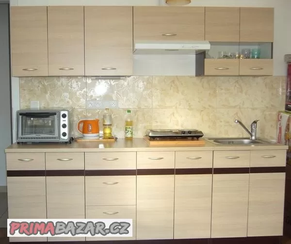 ...variabilní s pracovní dělenou deskou, lze sestavit dle svých potřeb, tzn. zleva na fotce první díl 60 cm, druhý díl 40 cm, třetí díl 60 cm a čtvrtý díl 60 cm, je tedy možno prohodit jakkoliv v pořadí...součástí je též odsavač páry, vodo-baterie, dřez a sifon, podlinkové LED světlo...byla zakoupena, jako později nevyhovující dar, nyní je dobře uskladněna a čeká na využití...uvedená cena, je bez dekorační ilustrace a viditelných spotřebičů, avšak včetně dovozu na místo určení, ale až po fyzické prohlídce a následného zaplacení...