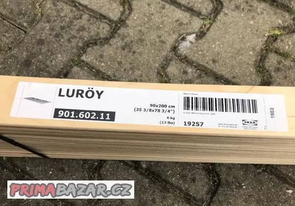 Dva kusy úplně nových roštů LURÖY se zakřivenými lamelami.