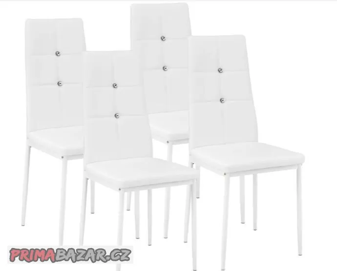 4 Jídelní židle, ozdobné kamínky bílá