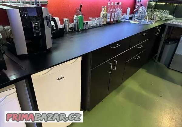 Prodám barovou linku se skříňkami ve velmi dobrém stavu. Instalována v roce 2022, linka je z kompaktního laminátu (velmi pevný materiál).