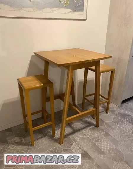 Prodám 2ks barových židlí Ton plus zvýšený stolek, masiv dub.