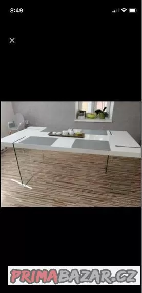 Prodám tento krásný designový stůl. Má skleněné nohy a je opravdu pevný, festovní. Designový kousek. Šířka 95, délka 190