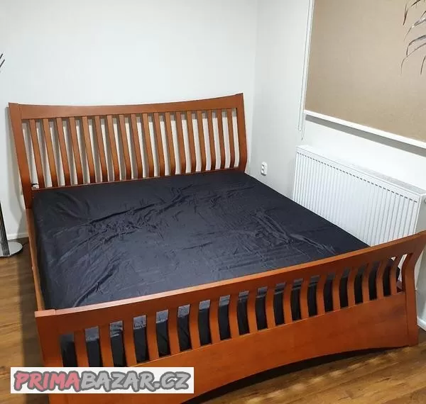 Designová postel vyrobená na zakázku 180x200cm, masiv, včetně roštu a matrace 180x200 vcelku. Perfektní stav.