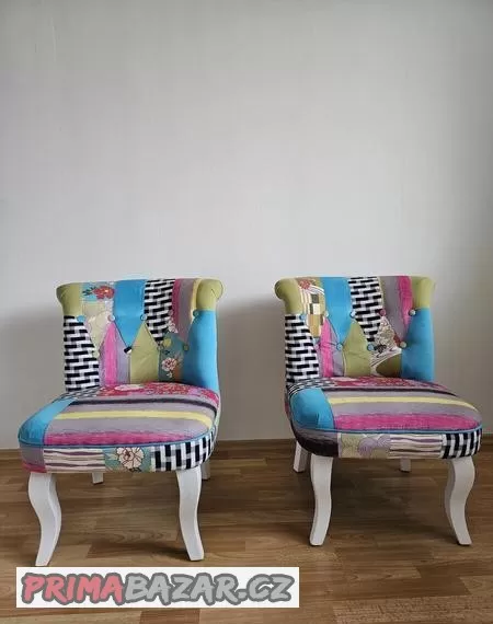 Prodám používané designová křeslo s prošívaným opěradlem, provedení: vzorovaná látka + bílé masivní dřevo (stále ve skvělém stavu). K prodeji 2 kusy.