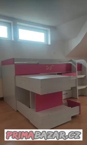 Dětská ložnicová sestava. Postel etážová, skříně, police.
