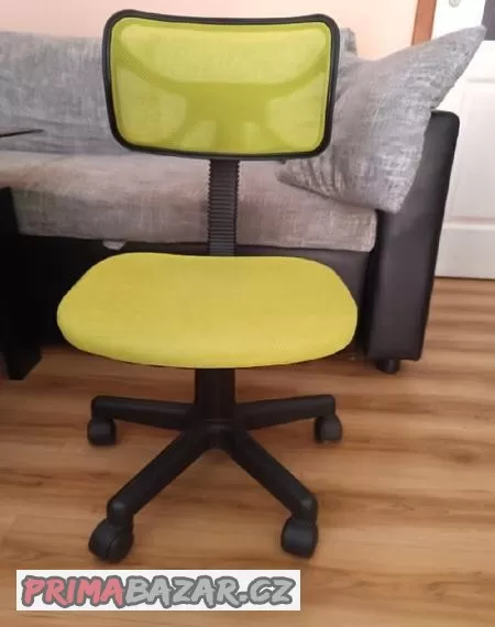 Zeleno-žlutá dětská židle, nastavitelná výška, opěrka zad má prasklý plast, který ji drží, na funkci to nemá vliv. Pouze osobně v Brně Starém Lískovci. Pokud ji nikdo nebude chtít do 11.5. poletí do eko dvora.
