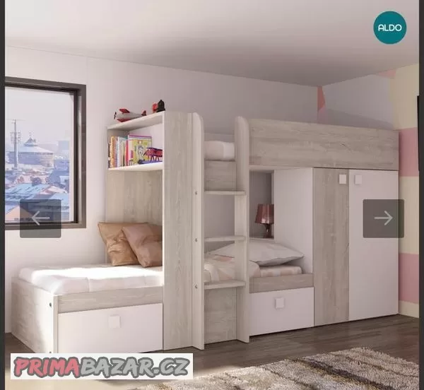Dětská patrová postel. Ve velmi dobrém stavu. Skříň i schůdky jsou variabilní, možná zrcadlové sestavení. Nový 22900, teď 7000. PLZEŇ