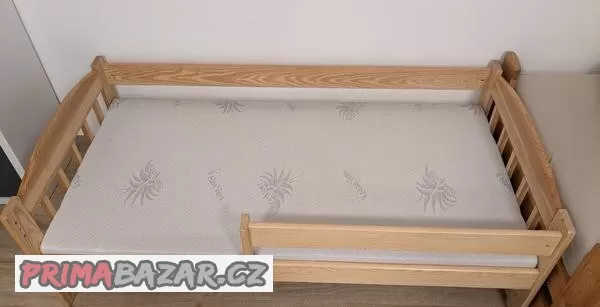 Masiv, s roštem, se zábranou P/L, s pěnovou matrací s pratelným potahem.