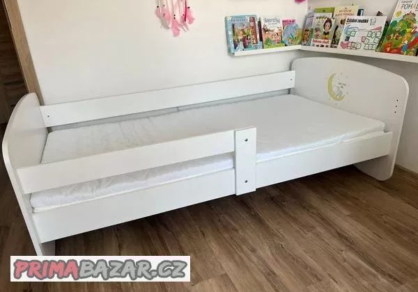 Prodám dětskou postel včetně matrace (pena/hr pena) a chrániče matrace. Zábranu je možné předělat zrcadlově i na druhou stranu. Rozměr postele je 180x90cm.. Postel je po jednom dítěti, používaná asi 2 roky, v krásném stavu. Cena za vše 2.000,-.