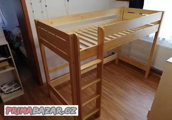 Prodám dětskou postel Bella - horní spaní. Rozměry 200x90x155 cm. Materiál masiv. Včetně matrace a roštu.