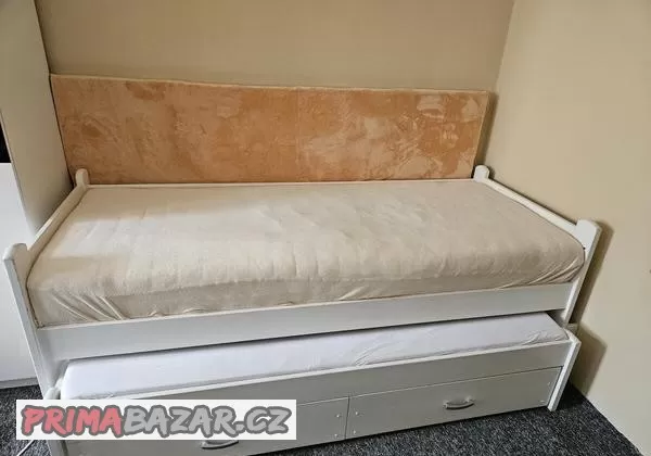 prodáme zachovalou dvojitou (roztahovací) postel i s úložným prostorem po dceři viz foto (rozměr horního lůžka 80x200cm).spodní matrace součástí