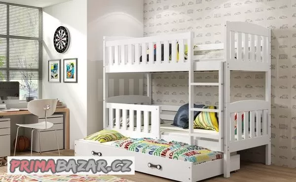Dětská patrová postel Kubus 3 s přistýlkou je vhodná pro plnohodnotné spaní tří dětí.