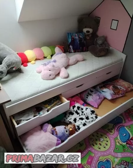 Dobrý dne prodám dětskou postel zřejmě z masivu, těžši.pouzivana ale velice dobrý stav,s roštem bez matrace.90x200 velikost a možností přistýlky a 3 supliku