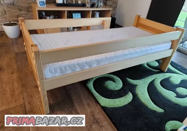 Dobrý den , prodám po synovi postel s matrací rozměr 160 x 70 . Postel je vyrobena z masivu od truhláře . Matrace je čistá bez fleků