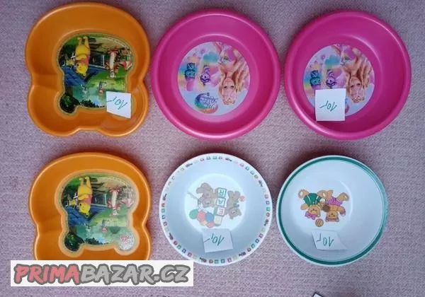 Dobrý den, prodám v dobrém stavu, nezničené dětské hrníčky a skleničky na nápoje + dětské talířky, mističky, a boxy na svačinu. Čtyřlístek je plechová sběratelská edice, drží pěkně teplo, a výborná cena