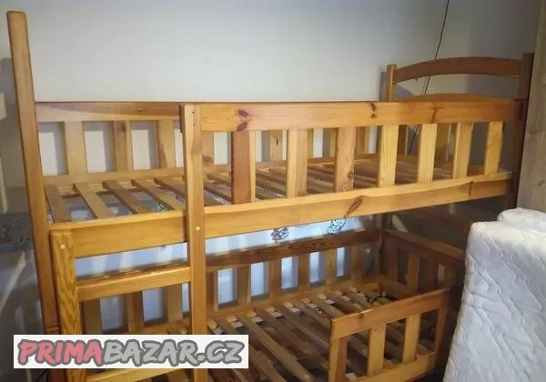 Prodám dětskou palandu z masivu.Povrchove oděrky, jinak zachovalá.Rozmery 190x80cm.Postel je pro převoz rozložená na bočnice,čela a rošty.