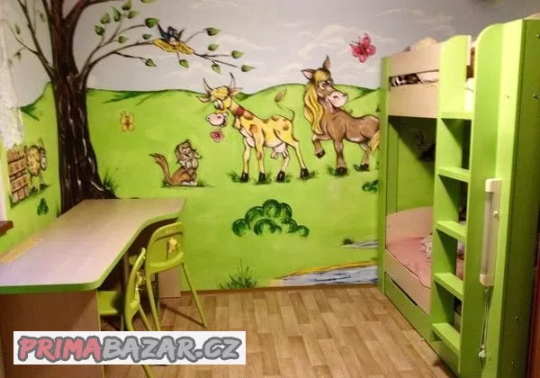 Dětský pokoj, patrová postel, stůl