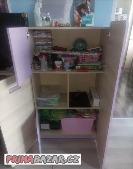 Prodam komplet nabytek, 5 let stare, do divciho pokoje, celkova delka je 320cm, jedna skrin ma svetlejsi barvu, ale jinak je nabytek v peknem stavu.