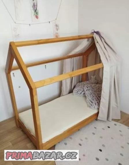 Bez poškození a vad prodám domeckovou postel s matrací, povlakem proti pročůrání, prostěradlem a kvalitním závěsem.