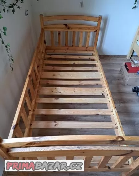 Prodám dřevěný rám postele s laťovým roštem. Smrkové dřevo. Pouze osobní odběr. V rozmontovanem stavu, snadné sportování.