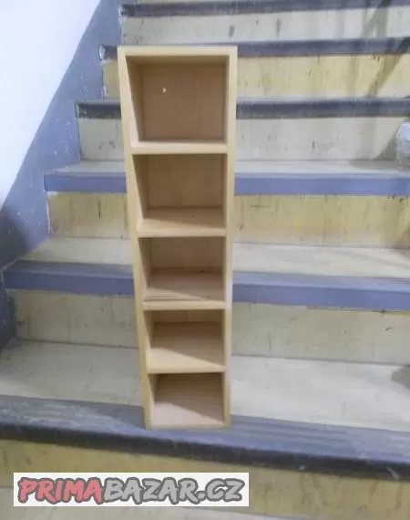 Prodám dřevěnou polici/regál světlý dub polomat. Jednotlivé části nejsou spojeny hřeby ani šrouby, ale ozuby (viz foto). Použitelná na šířku i výšku, může samostatně stát nebo ji lze zavěsit.