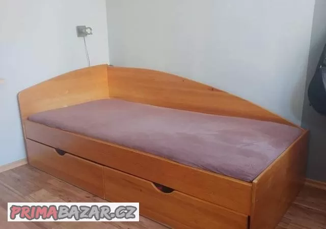 Dřevěná (smrková) postel s úložným prostorem vhodná do dětského pokoje. Rozměry 200x90 cm.