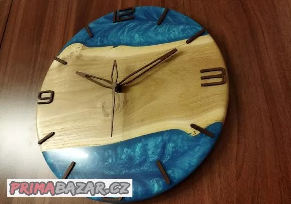 Prodám hodiny z akátu a epoxidu s krásnou kresbou. Nové, nepoužité. Průměr je 35cm. Mechanismus je Quartz, tichý a plynulý, netiká. Povrchová úprava je tvrdovoskový olej. Bazoš upravuje kvalitu fotek. Originál fotky rád pošlu.