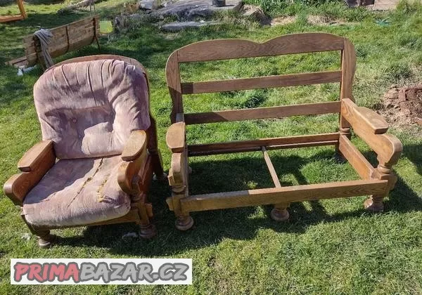 Prodám dřevěný gauč a dvě křesla. Velmi bytelný. Pouze konstrukce, bez polštářů. V případě velmi rychlého jednání za odvoz.