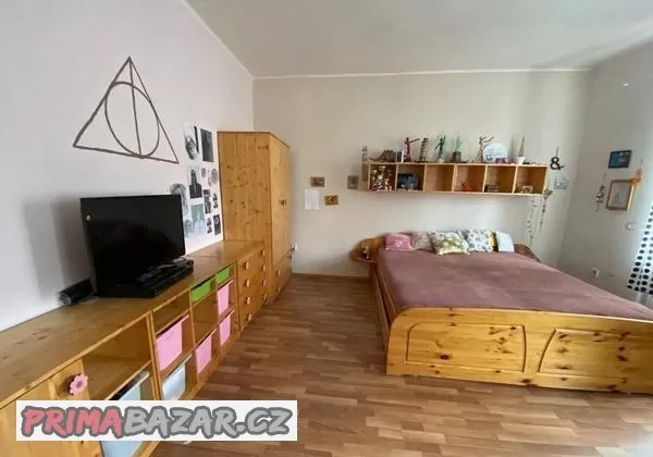 Prodám dřevěný nábytek z masivu. Sestava se skládá z dvojlůžka (výsuvné třetí lůžko), šatní skříně, třech nízkých skříněk. Rozměry sdělím na vyžádání. Dobrý stav, běžné známky opotřebení.