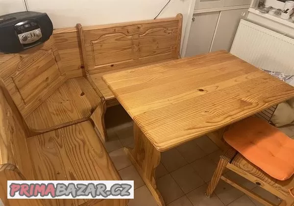 Dreveny stul plus rohova lavice