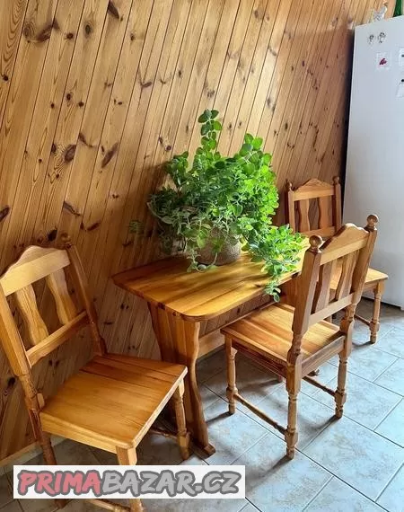 Jídelní stůl z borovice se 4 židlemi