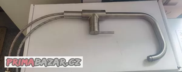 Jednopáková kuchyňská baterie s otočným výtokem ve tvaru U, keramický mixovací systém se studeným startem s funkcí úspory energie díky poloze studeného startu, regulátor laminárního proudění, flexibilní připojení 3/8", verze v ocelovém provedení, páka vpravo.