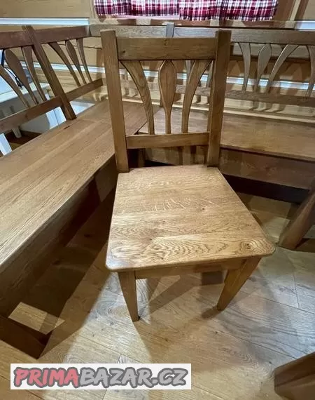 dubová masivní lavice a 6 židlí