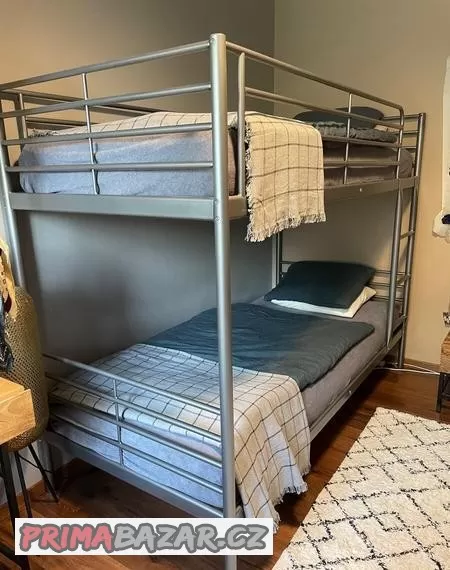 Dvoupatrová palanda, kovová konstrukce, barevné provedení stříbrná, součástí palandy 2 zánovní matrace 90x200cm