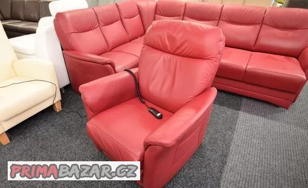 Krásné celokožené elektricky polohovatelné křeslo. Křeslo je vyrobené ze silné a kvalitní kůže.