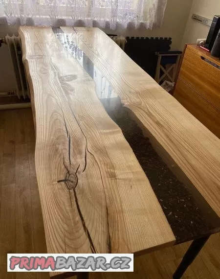 Epoxid je leštěný a dřevo ochráněno odie’s oilem.