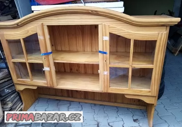 Nabízím horní část nedodělaného příborníku, je dřevěný, potažený dýhou. Otevírací křídla jsou zasklená. Šířka 153 cm, výška 116 cm, hloubka 40 cm.