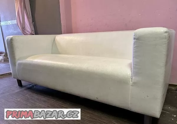 Prodám koženkový gauč Ikea - bílý. Opotřebený viz foto, bez poškození, plně funkční. Rozměry viz foto. Výhradně osobní předání. Kouřim.