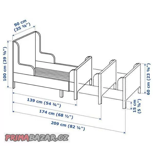 Prodám Ikea rostoucí postel s roštem. Bez matrace. Osobní odběr.