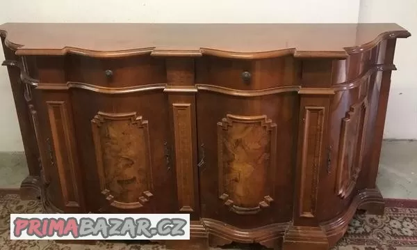 Nabízím k prodeji použitou exkluzivní velkou vykládanou Italskou komodu z masivu. Horní deska je leštěná. Pod ní se nachází dvě čelní zásuvky a po stranách jsou naznačeny zásuvky falešné. Pod nimi jsou čtvery vykládaná dvířka. Spodní prostor má jednu dřevěnou polici. Jedná se o použitý nábytek se znaky používání. Stav komody velmi dobrý. Obj.č.KV38 Rozměry: Rovná: v=90cm, š=195cm, hl=48cm