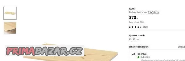 IVAR regály, užívné v kuchyni a šatně, borovice. Nyní sestaveny jako 1+1+2 tj. 7 bočnic a 24 polic.