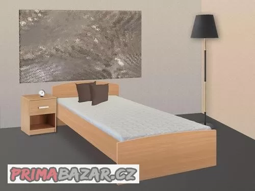 Jednolůžková postel 90x200 s roštem. Dekor buk. Postel dodávána s matrací bez potahu zdarma. Je možné si přikoupit noční stolek. Rozměr délka: 204, šířka 98, výška 66 cm. Dopravu zajistím. Montáž a likvidaci starého nábytku si lze domluvit