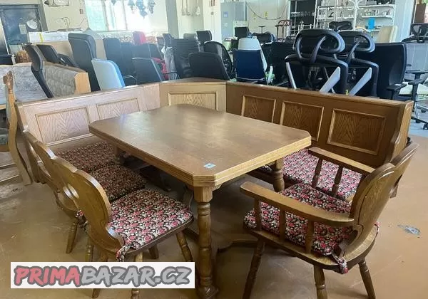 Prodáme hezkou jídelnu. Lavice, stůl i židle jsou v dobrém stavu.