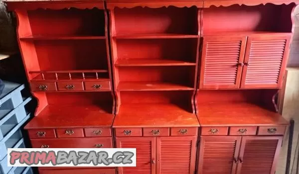 Prodám jídelní sestavu Bonanza složenou ze tří částí (3x76cm, 175cm) + čtvercový stůl se 4 židlemi.
