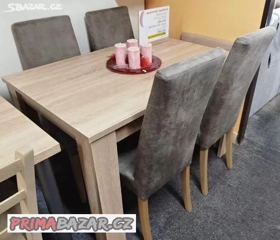Nabízíme NOVÝ jídelní set: rozkládací stůl a 4 ks jídelních židlí. Stůl 120x80cm+50cm rozklad, v odstínu Dub Sonoma. Smluvní doprava.