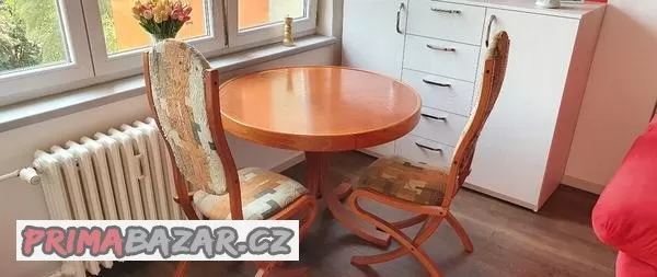 Židle nutno přečalounit, jelikož látka je poškozená a vyháčená od koček.