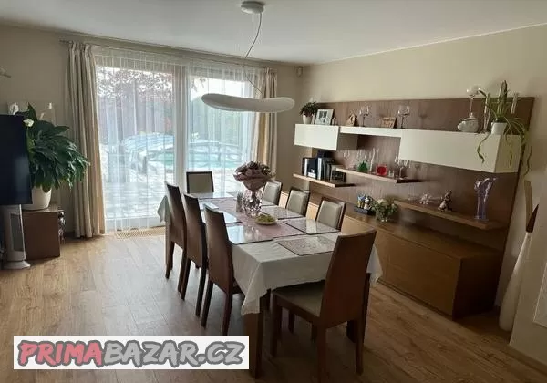 Nabízím jídelní stůl dřevo - ořech, délka 210cm s rozkladem na 245cm, ve velmi dobrém stavu s 8ks židlí- dřevo - ořech v kombinaci se světlou kůží. Židle lehce opotřebené.