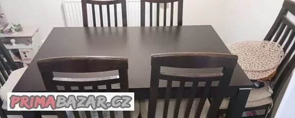 Stůl 120x80x75 cm + 6 židlí, barva wenge, dobrý stav.