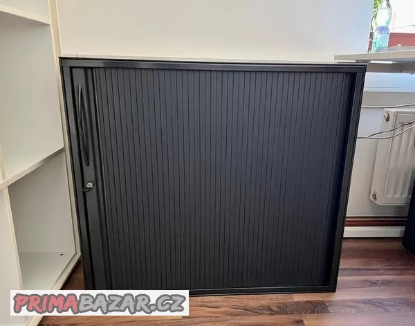 Kancelářská skříňka s roletou, značka König & Neurath, rozměr 80 x 42 x výška 74 cm, barva antracit, uvnitř 1 ks police. K dispozici 4 ks.